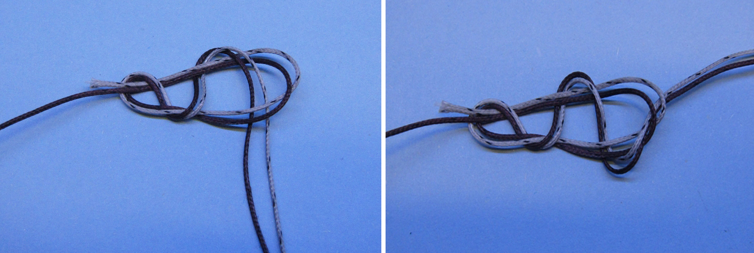 D: a questo punto, a differenza del surgeon, entrate e uscite dall'occhiello. Utilizzate sempre pollice e indice per bloccare ogni spira successiva