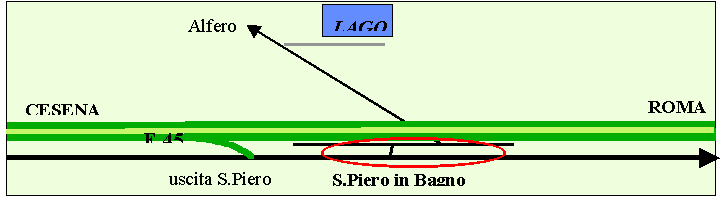 E45 fino a S.Piero in Bagno, si seguono le indicazioni per Alfero e dopo