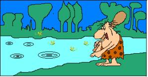 proviamo ad immaginare che andò così: NINFUS, giovane guerriero e valente cacciatore, avendo visto dei pesci nuotare nel fiume e salire spesso a ghermire grossi insetti, pensò di studiare un sistema per catturarli. Si rivolse a TUTAK-HODA, il saggio del villaggio, e ne ascoltò con attenzione i consigli. Il saggio era uno straniero, provenendo da un villaggio di pescatori ad almeno un chilometro di distanza, e purtroppo parlava un idioma tanto differente dal suo che NINFUS ebbe non poche difficoltà ad interpretare le sue parole, ma alla fine gli parve di capire che si, si potevano catturare quei pesci “ma fai attenzione, perché mangiano soprattutto sott’acqua!” gli disse il vecchio. Ricco di questi consigli si armò di clava e si tuffò per pescare sotto.